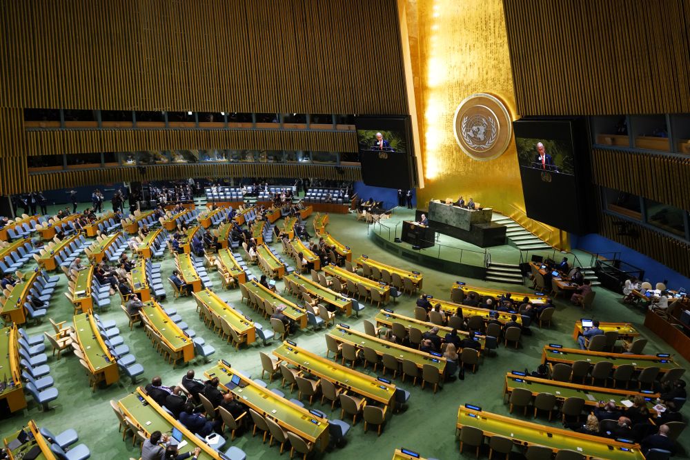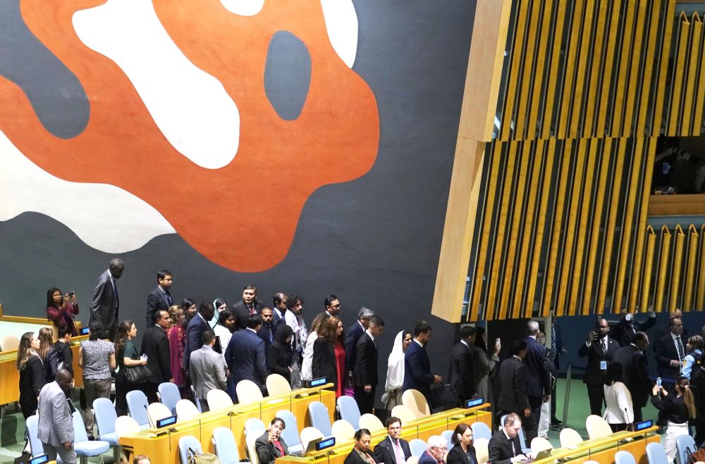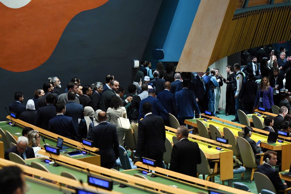 9月26日,第80届联合国大会一般性辩论期间配资论坛,以色列总理内塔尼亚胡发言,多国代表纷纷起身离场抗议。