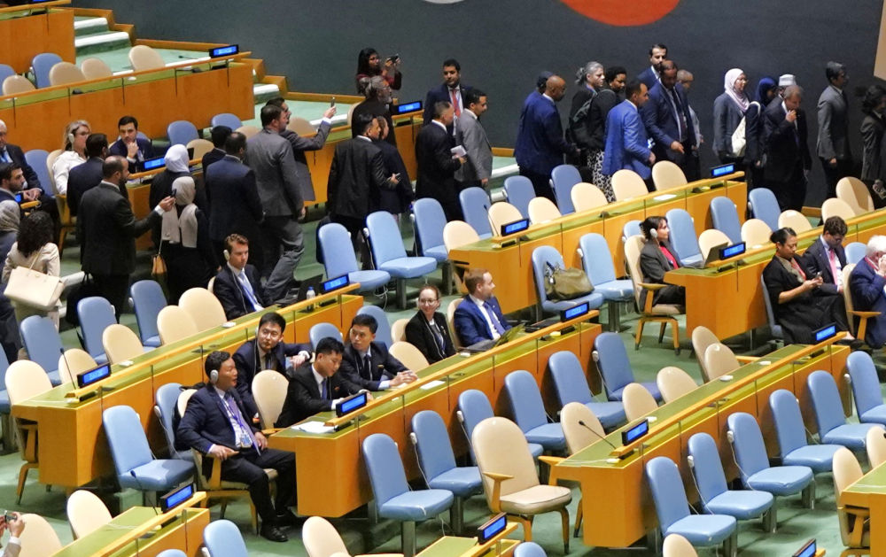 多国代表离场后,代表席空空如也。